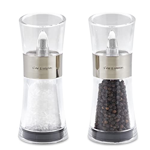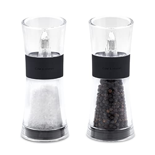 Cole & Mason Everyday Gift Set Salt and Pepper Grinders, 110mm Acrylic Salt and Pepper Mill Set with Adjustable Grind Settings, Ceramic Mechanism, Compact Mills Ideal for Picnics and Camping
