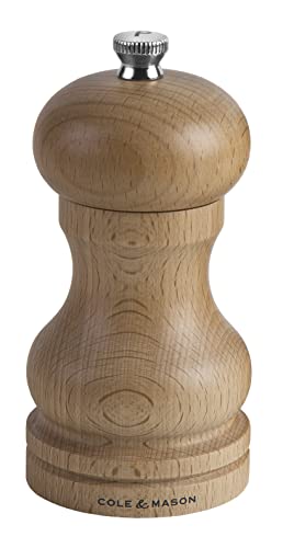 Cole & Mason Beech Capstan A4 Pepper Mill, 120mm, Adjustable Grind Precision+ Mechanism, Beech Wood, Single, Includes 1 x Pepper Grinder
