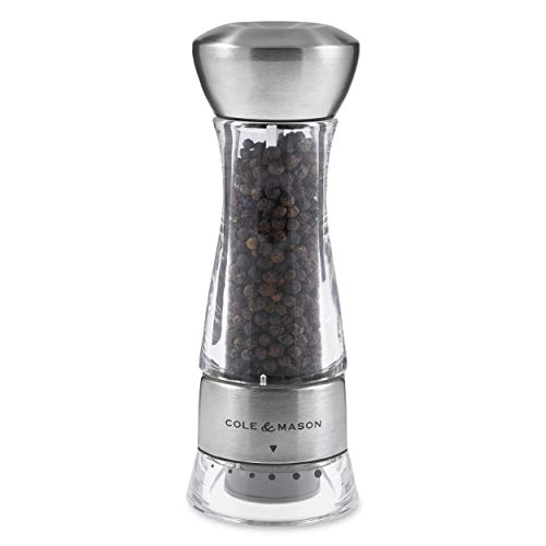 Cole & Mason H59401G Derwent Pepper Mill, Gourmet Precision+, Stainless Steel/Acrylic, 190 mm, Single, Includes 1 x Pepper Grinder