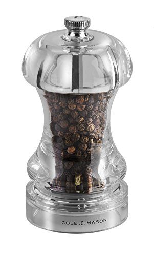 Cole & Mason H35701P Pina Clear Pepper Mill, Precision+, Acrylic, 125 mm, Single, Includes 1 x Pepper Grinder
