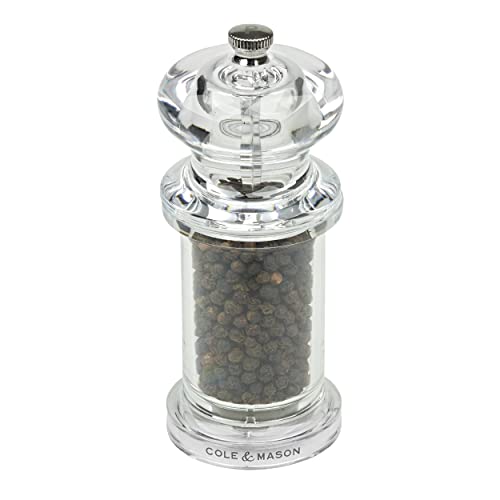 Cole & Mason Crystal Clear Pepper Mill, Adjustable Grind Precision+, Acrylic, 125mm, Includes 1 x Pepper Grinder, Lifetime Mechanism Guarantee