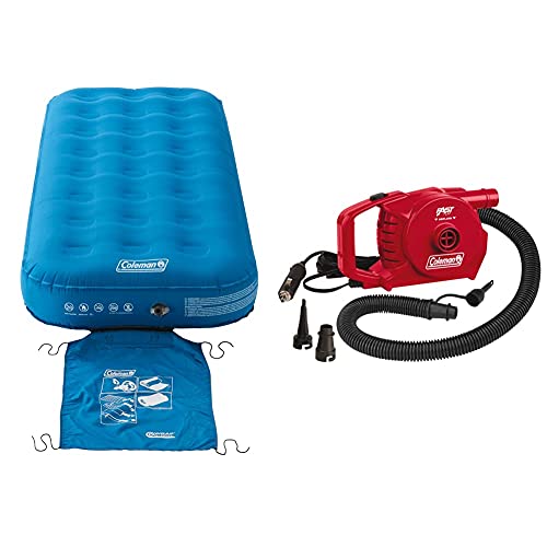 Coleman Airbed Extra Durable Single, Camping bed, Flocked Single Air Bed, Inflatable Air Mattress, Heavy Duty Airbed, Comfort Blow Up Bed & 12 Volt Quick Pump - Red, 20.5 x 0 x 12.5 cm