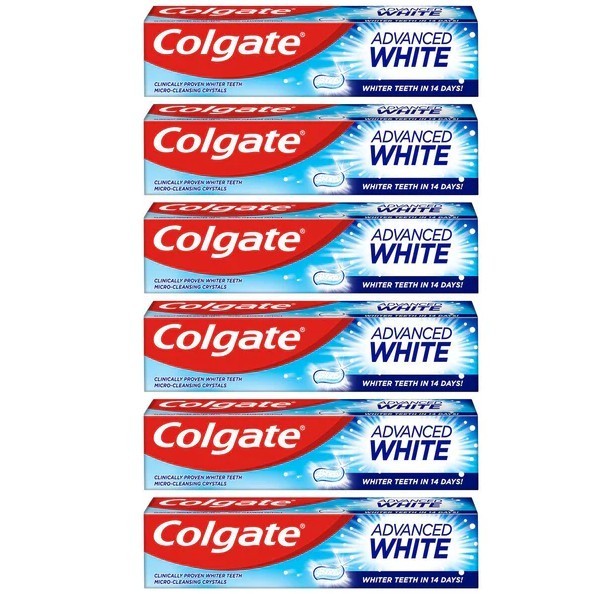 Colgate Advanced White Toothpaste, 6 x Multi Action Whitening Toothpastes with Cavity Protection Fluoride Formula for Whiter Teeth, Bulk/Value Set - 6