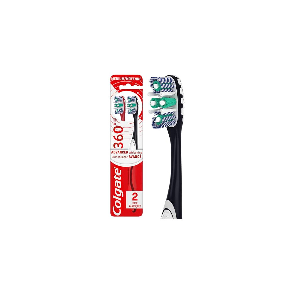 360 Optic White Advanced Toothbrush, Medium Toothbrush for Adults,2 Count (Pack of 1)