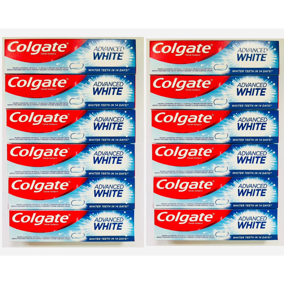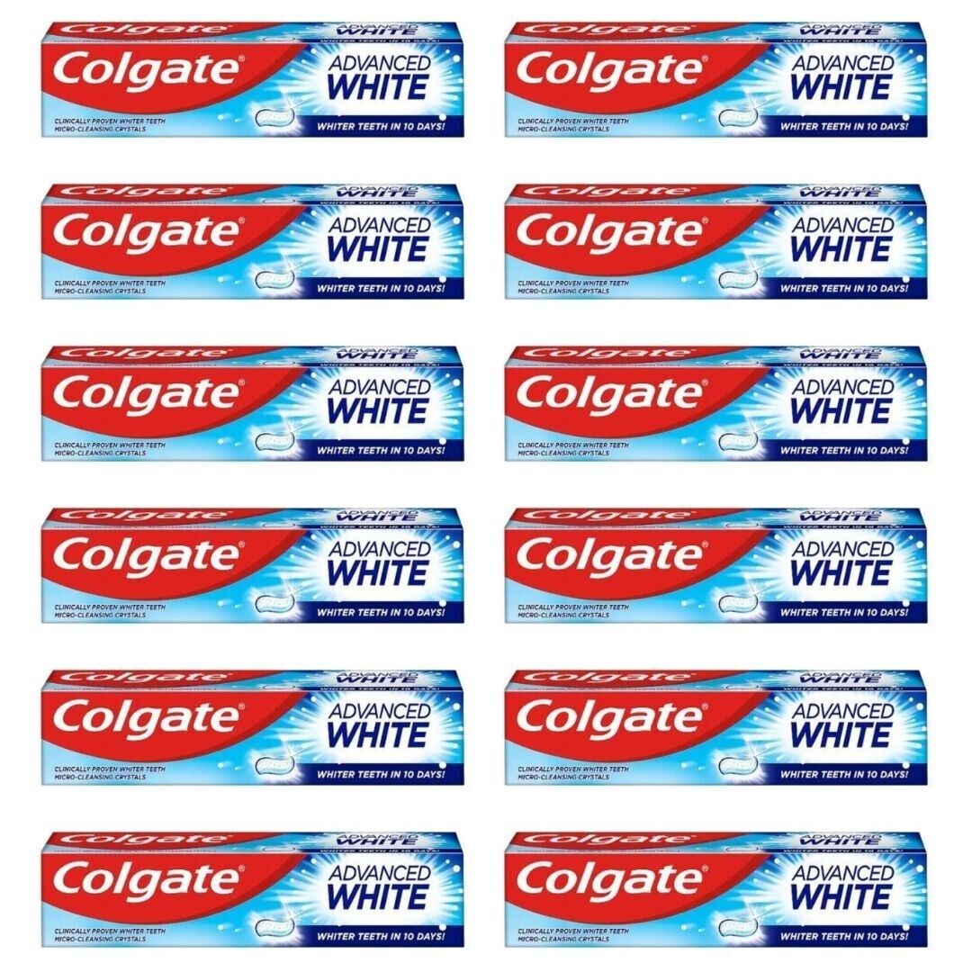Colgate Advanced White Whitening Toothpaste Whiter Teeth - Pack of 12 x 75ml