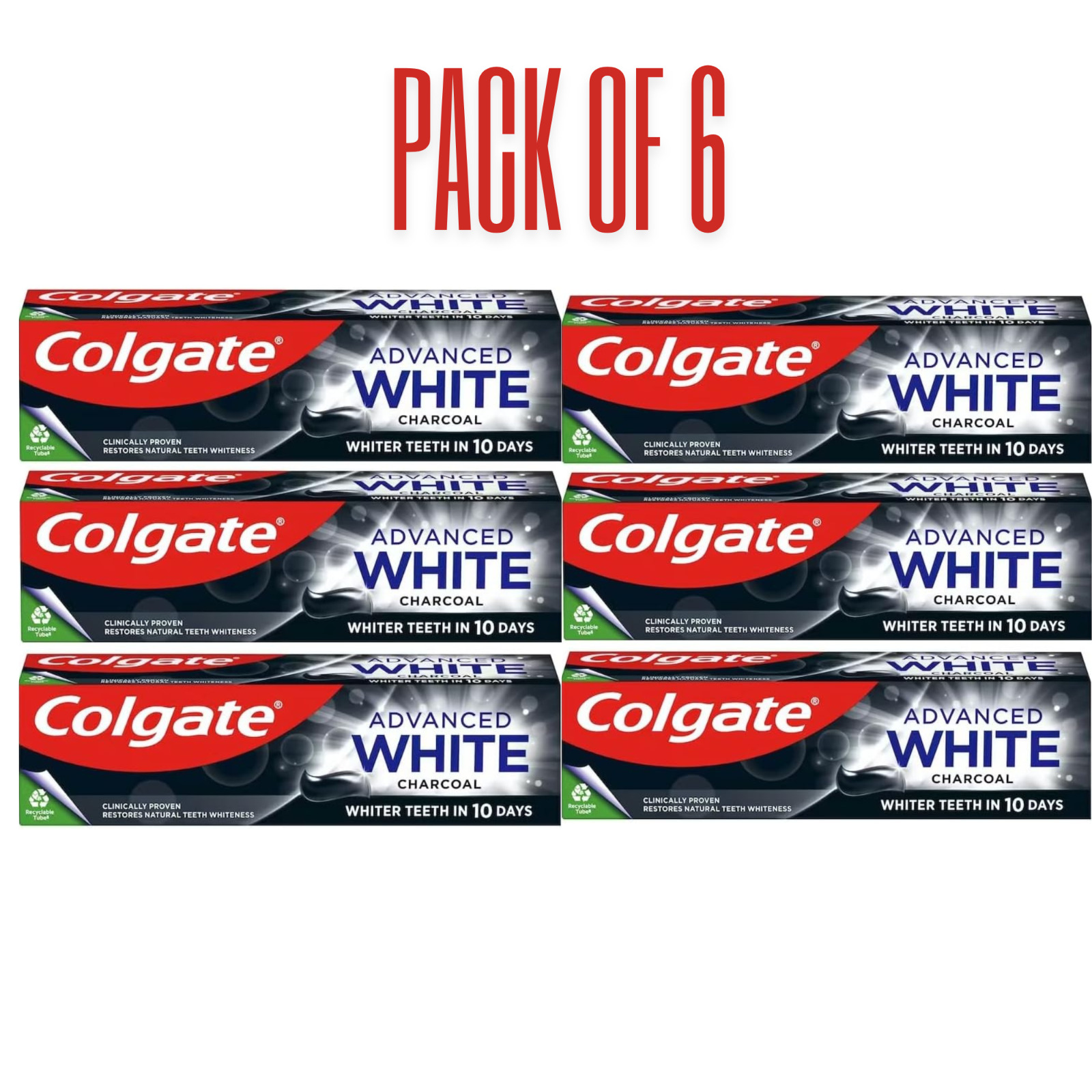 Colgate Advanced White Charcoal White Toothpaste - 75ml Pack of 6 Bulk