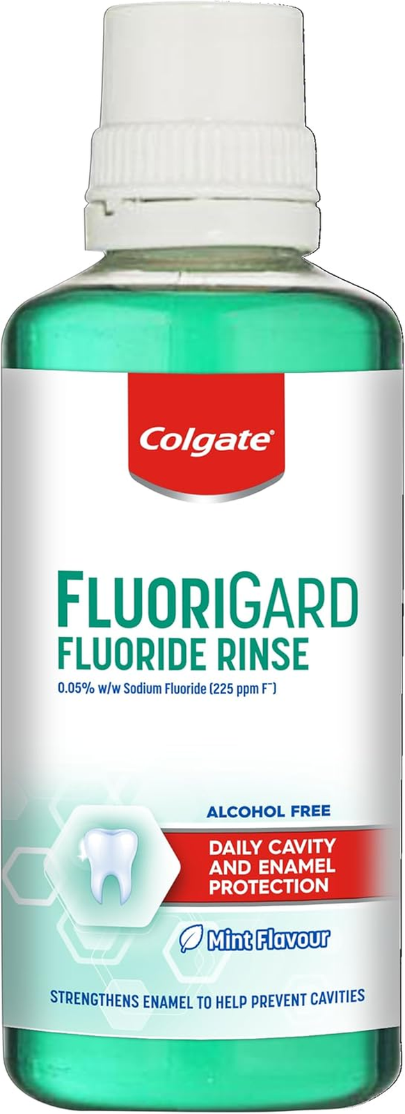 Colgate Fluorigard Fluoride Rinse (Alcohol free) Mouthwash 400ml, Prevents Tooth Decay, Strengthens Enamel, Prevents Mineral Loss, Mint Flavour
