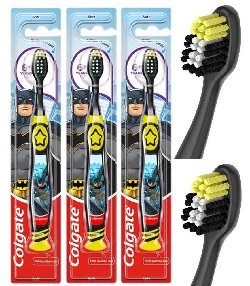 3x Colgate Kids Batman Toothbrush Soft Bristles 6+ Years PACK Of 3