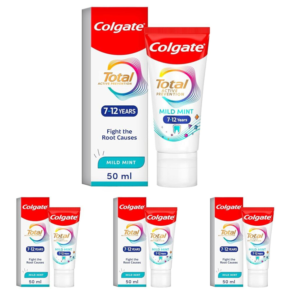 Colgate Total Kids 7-12 Years Mild Mint Toothpaste 50ml x4 Multipack - for new permanent teeth - fights root causes² of many oral health problems - sugar acid protection³ - suitable for braces