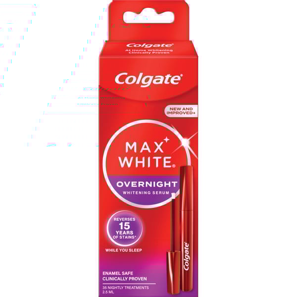 Colgate Max White Overnight Teeth Whitening Serum - Home Teeth Whitening Pen - Reverses 15 Years of Stains* While You Sleep - New and Improved Applicator - Enamel-Safe - Easy to Use