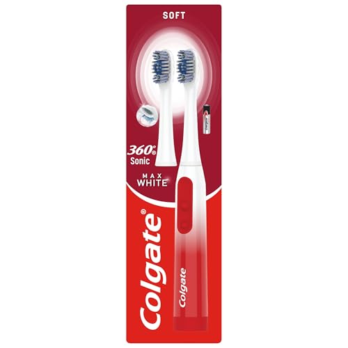 Colgate 360 Sonic Max White Battery Powered Toothbrush Cleans in 4 Ways and Polishes Teeth Surface for a Healthy, Whole Mouth Clean with a Replaceable Head and a Battery