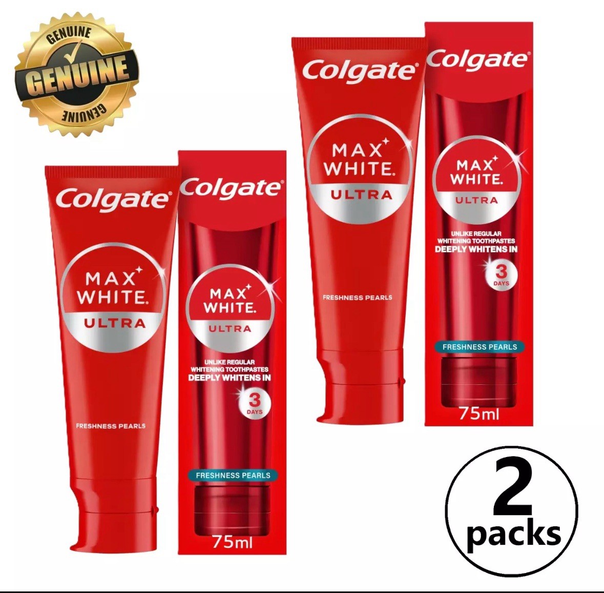 2 X Colgate Max White Ultra Freshnes Pearls Teeth Whitening Toothpaste 75ml NEW