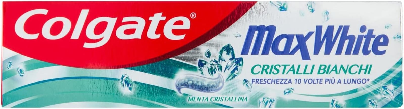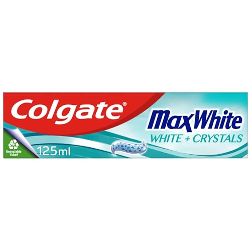 Colgate Max White White + Crystals Toothpaste 125ml - Teeth whitening Toothpaste - restores Natural Whiteness - 10x Longer Lasting Cooling Than Regular Fluoride Toothpaste - Fights Cavities