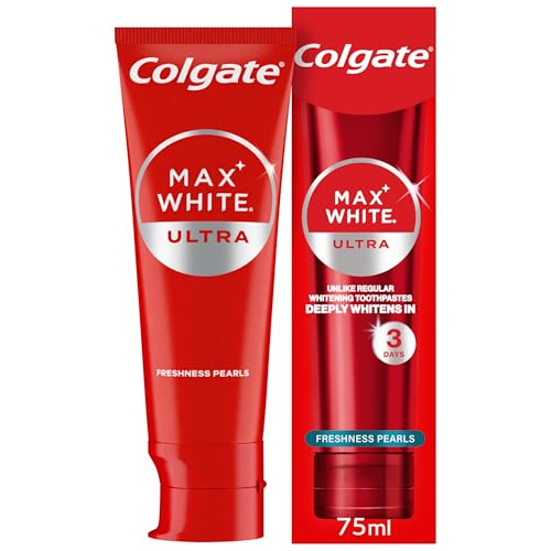 Colgate Max White Ultra Freshness Pearls Whitening Toothpaste 75ml - Deeply whitens in just 3 Days - Removes deep-Set Stains - Warming Sensation and Rich Foam - Enamel Safe for Daily use
