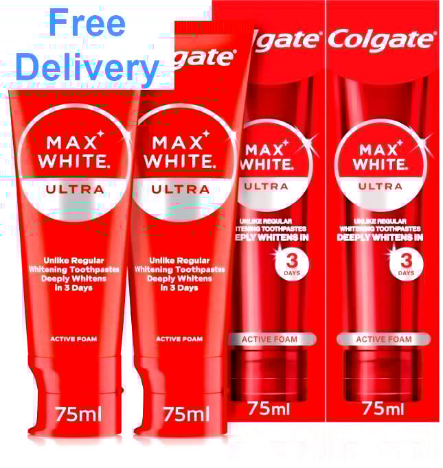 COLGATE Max White Ultra Active Foam Whitening Toothpaste with Fluoride, 2 x 75ml