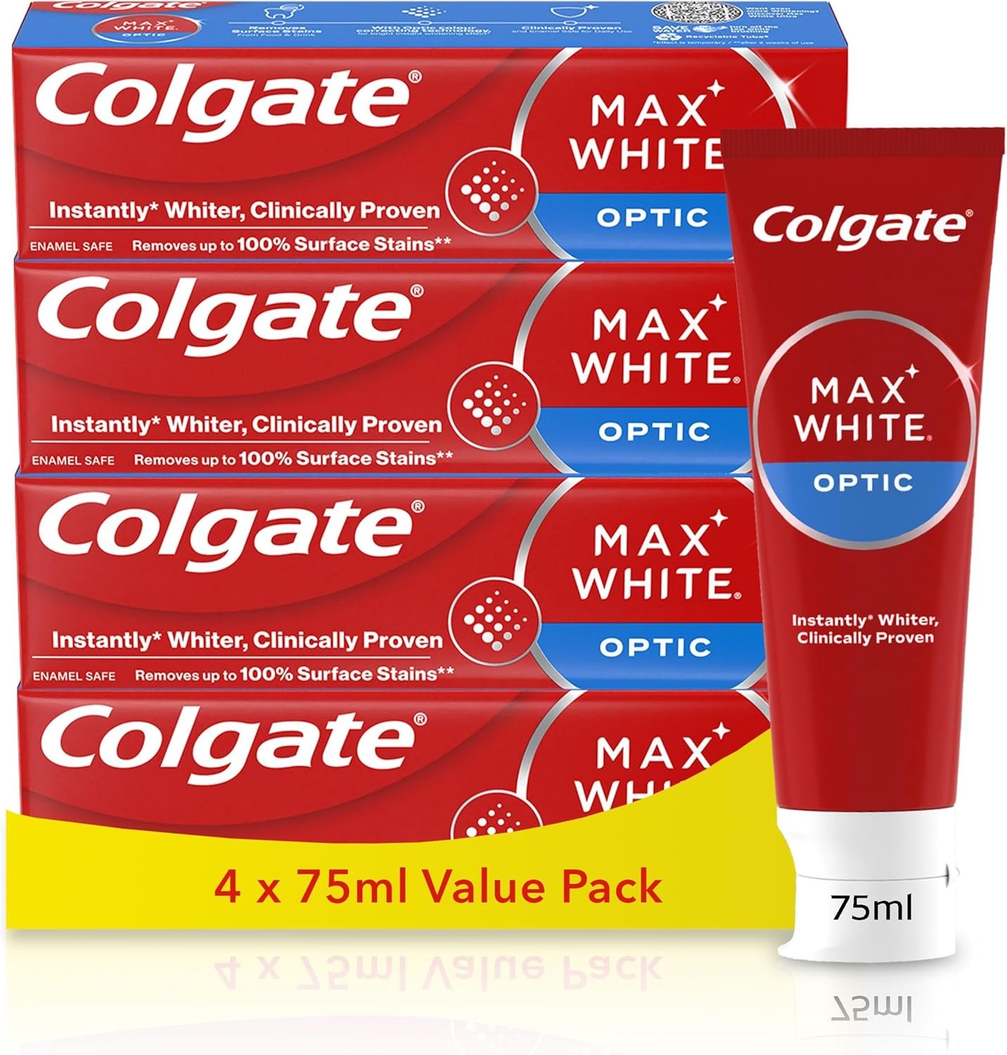 Colgate Max White Optic Toothpaste 4X75ml - 75 ml (Pack of 4), 4 X 75 Ml
