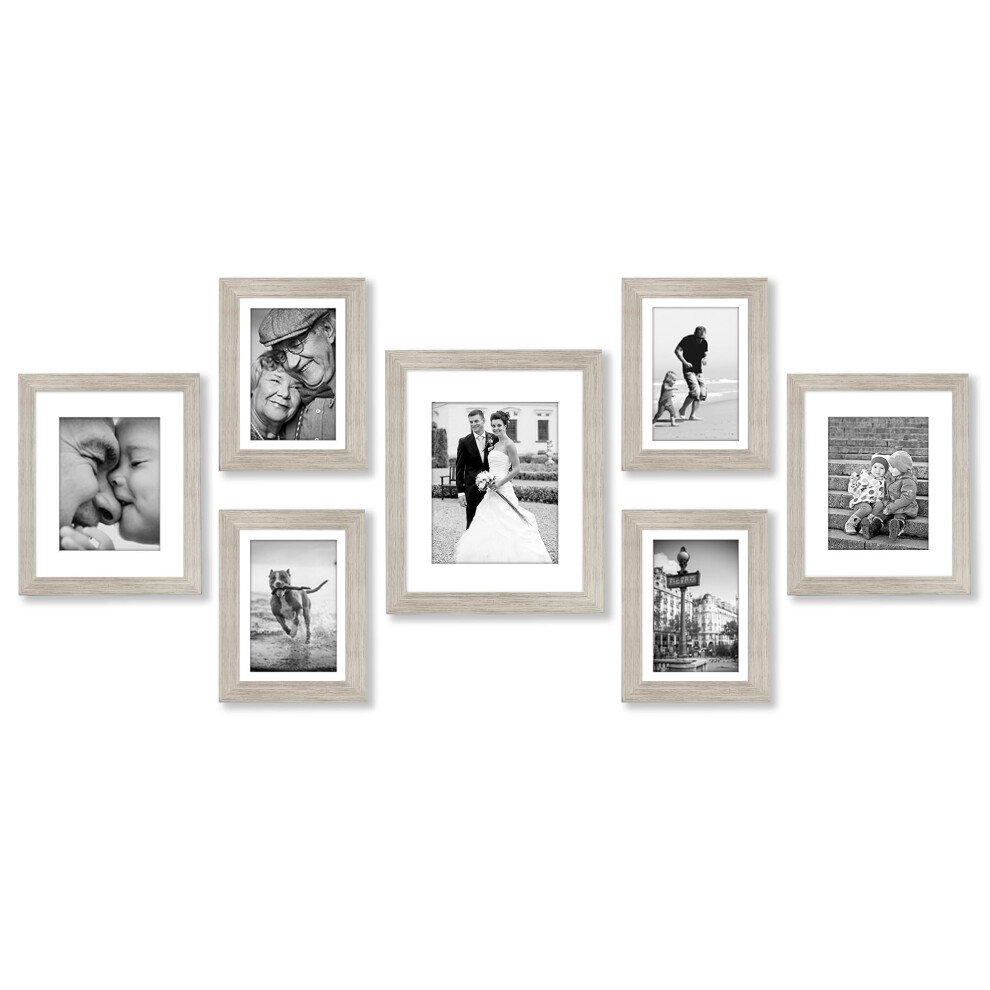 Americanflat 7 Piece Gallery Wall Frame Set in Driftwood - One 11x14, Two 8x10, Four 7x5 - Collage Photo Frames with Horizontal and Vertical Formats for Wall and Tabletop
