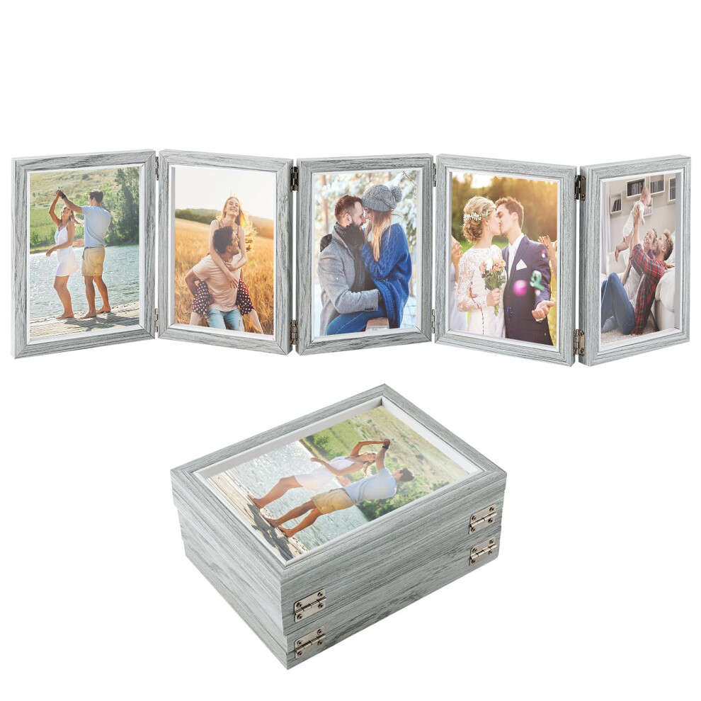 Afuly Double Photo Frame 6x4 Photo Frames Wooden Picture Frame Grey 4x6 Multi Picture Frames Standing Desk Frame Folding 2 Pictures Collage Christmas Wedding Birthday Women Family Friend Gifts