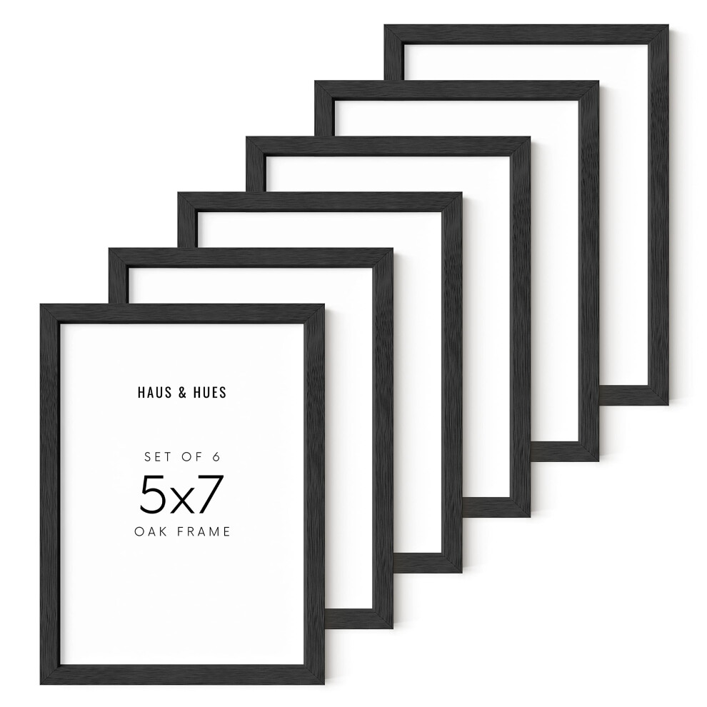 HAUS AND HUES Black Picture Frames 5x7 Set of 6 5x7 Frames for Pictures Collage Photo frames 5x7 Wood Picture Frames 5x7 Bl