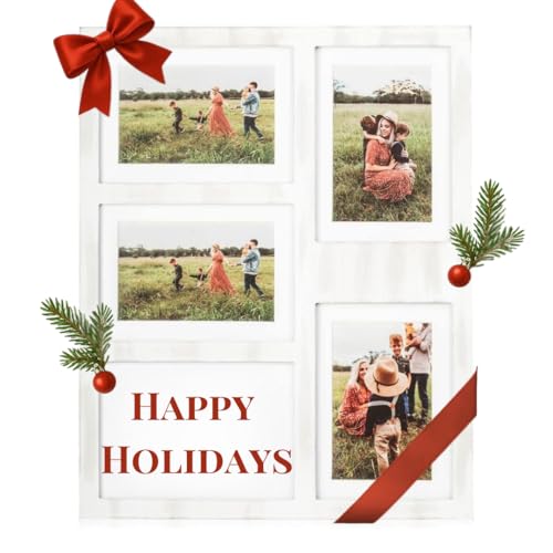 GLM Farmhouse Picture Frames, Holds 4 Photos,4x6 with Mat or 5x7 Picture Frame Collage, Picture Frames Collage Wall Decor, Photo Collage Frame, Collage Frames for 4x6 Pictures (White)