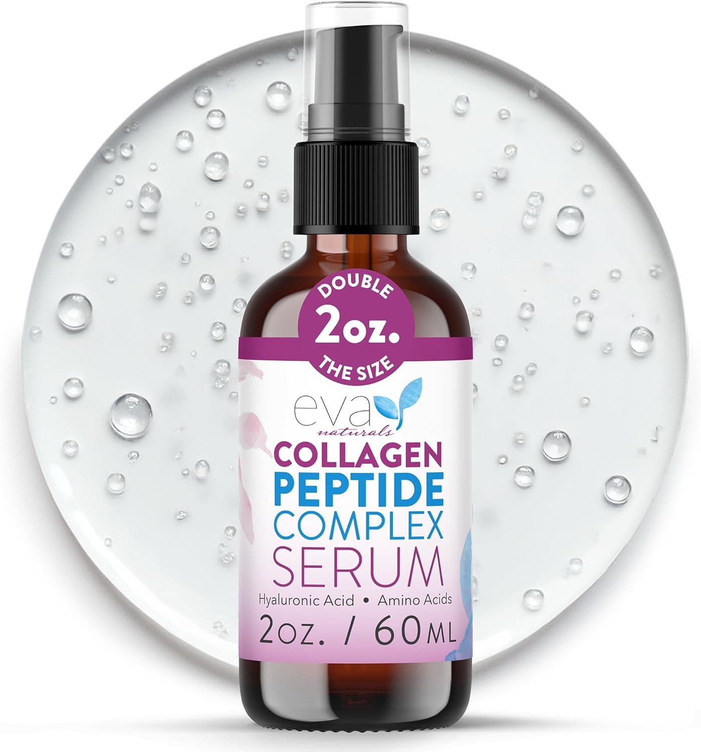 Eva Naturals Peptide Complex Serum for Face – Anti Aging Collagen Booster, Wrinkle & Fine Line Repair, Firming & Hydrating Facial Serum for Microneedling & Skin Renewal (60 mL)
