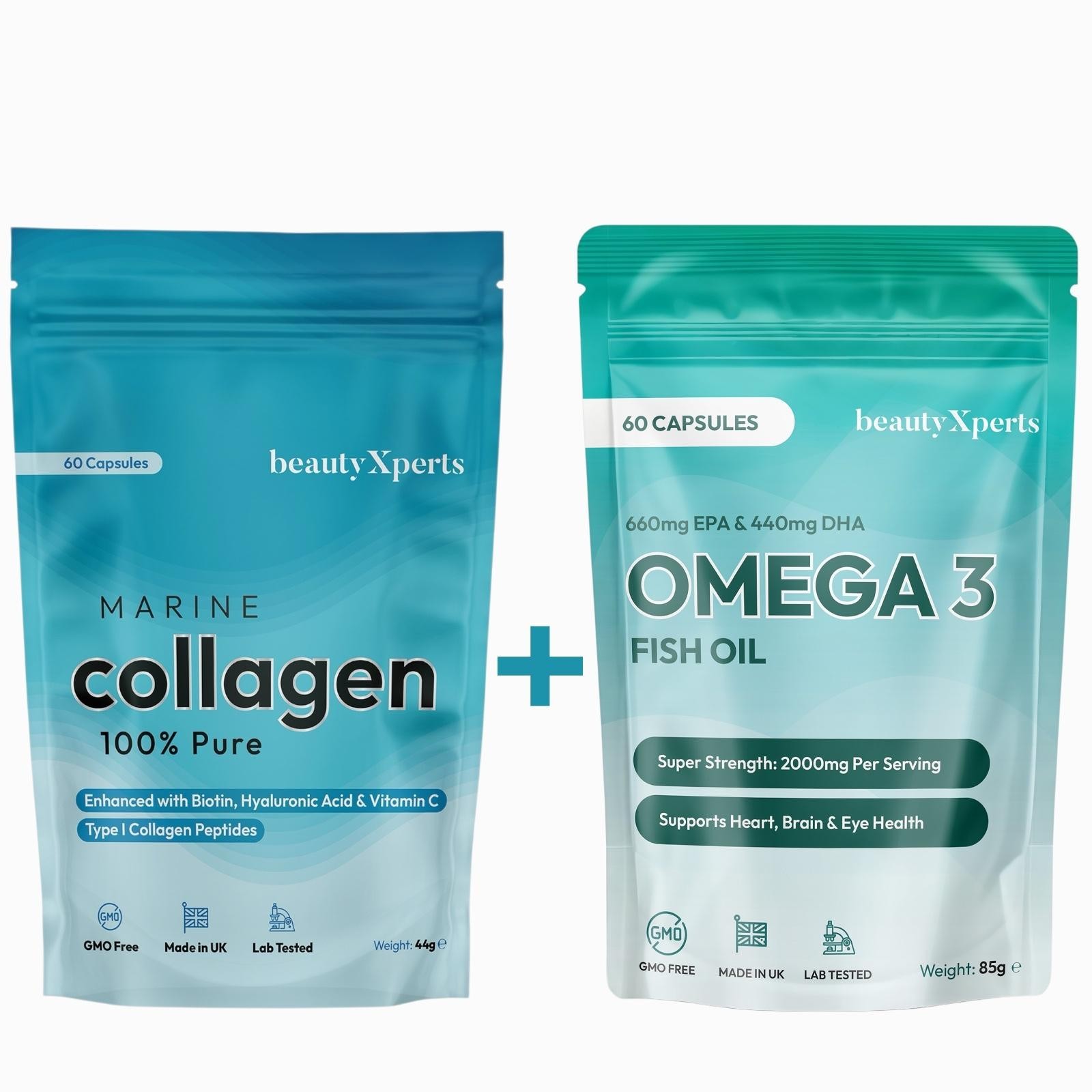 Marine Collagen Capsules + Omega 3 Fish Oil Softgels - 2pk Bundle - Supplements