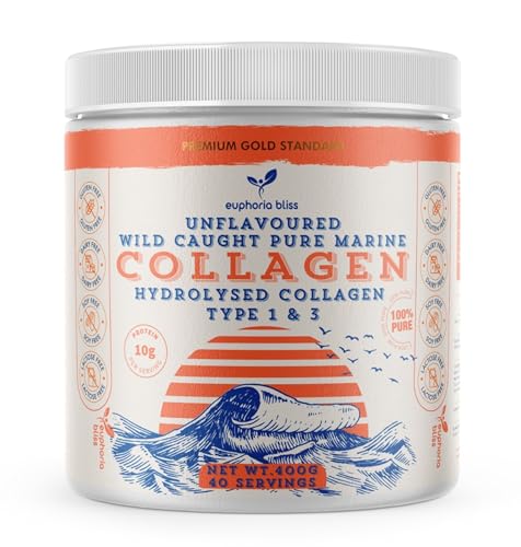 Marine Collagen Powder Type 1 & 3 | Wild Caught Fish | Non-GMO | Unflavoured for Women & Men | Healthy Skin, Hair, Joints & Bones | 400G
