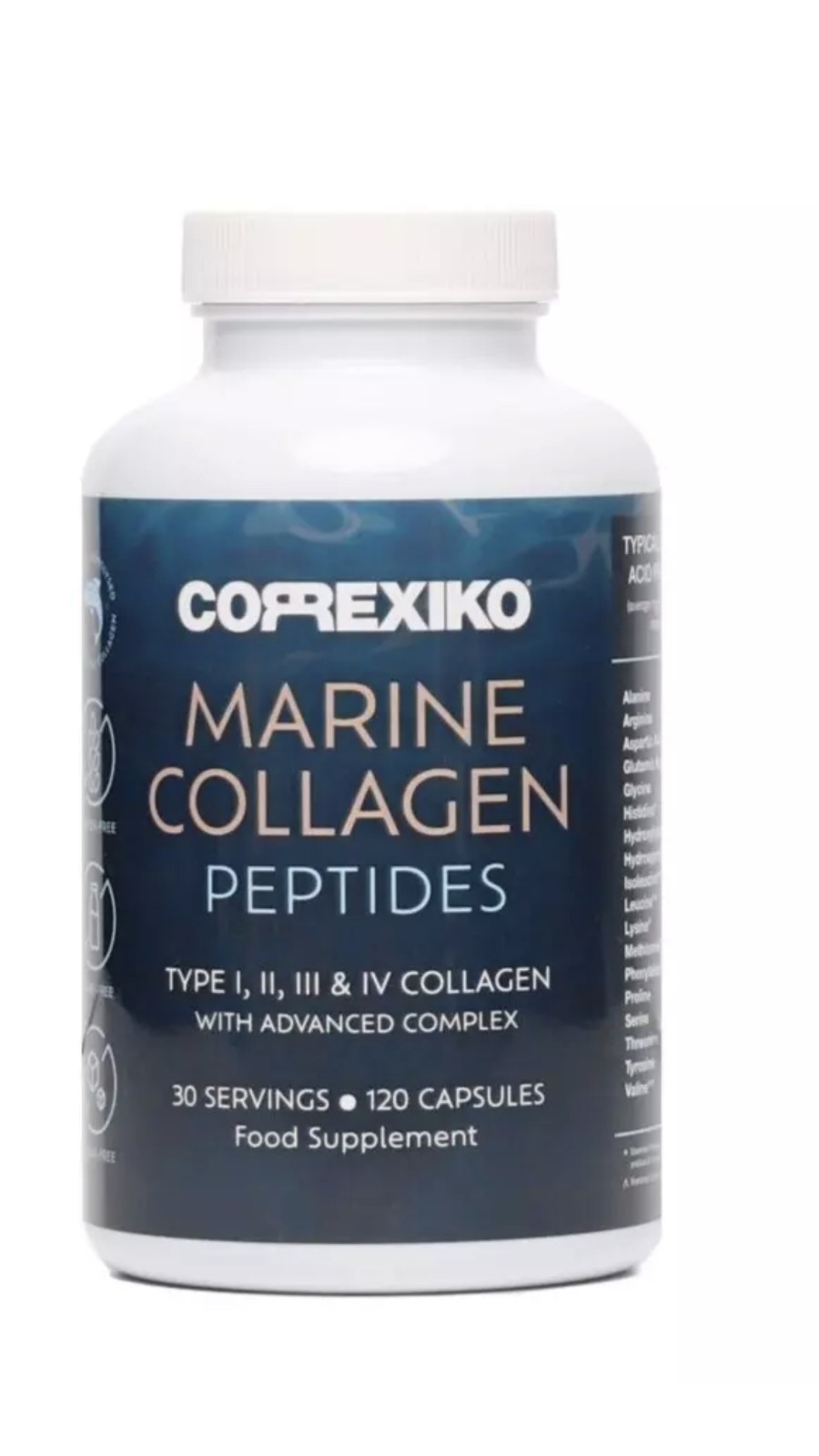 CORREXIKO Marine Collagen Capsules 120 Hyaluronic Acid Wild Fish Tablets 2200mg