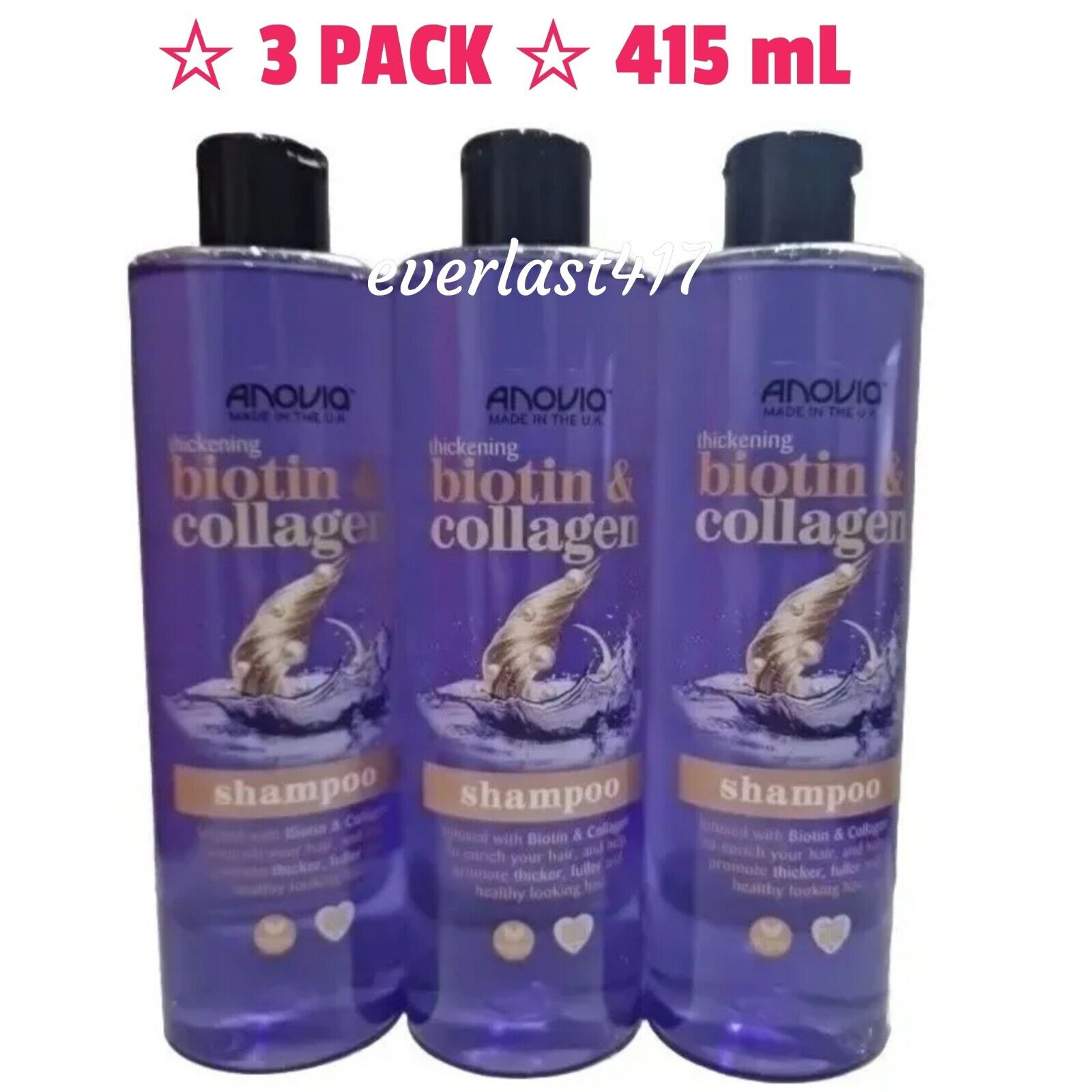 Anovia Biotin & Collagen Strengthening Shampoo for Thicker Hair 415ml, 3 PACK