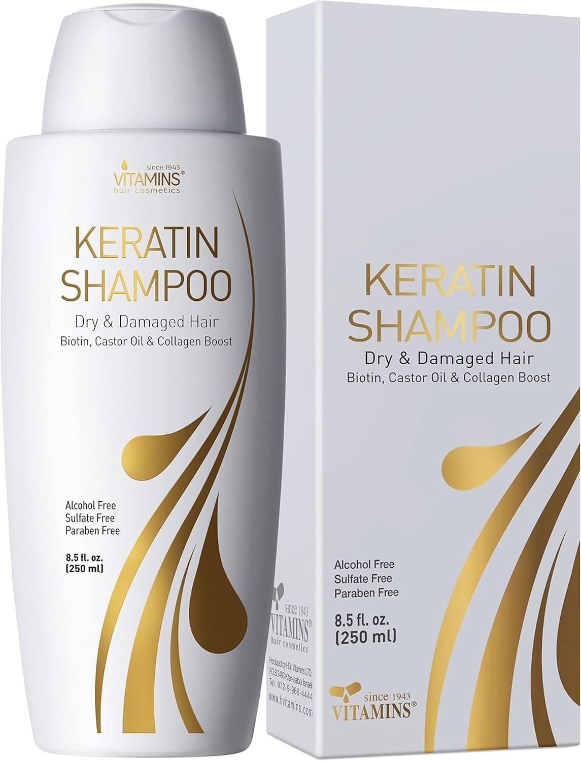 VITAMINS hair cosmetics Keratin Shampoo for Dry Hair - Paraben & Sulfate Free Shampoo for Damaged Hair with Biotin & Collagen - Castor Oil & Protein Repair Treatment - 250 Ml