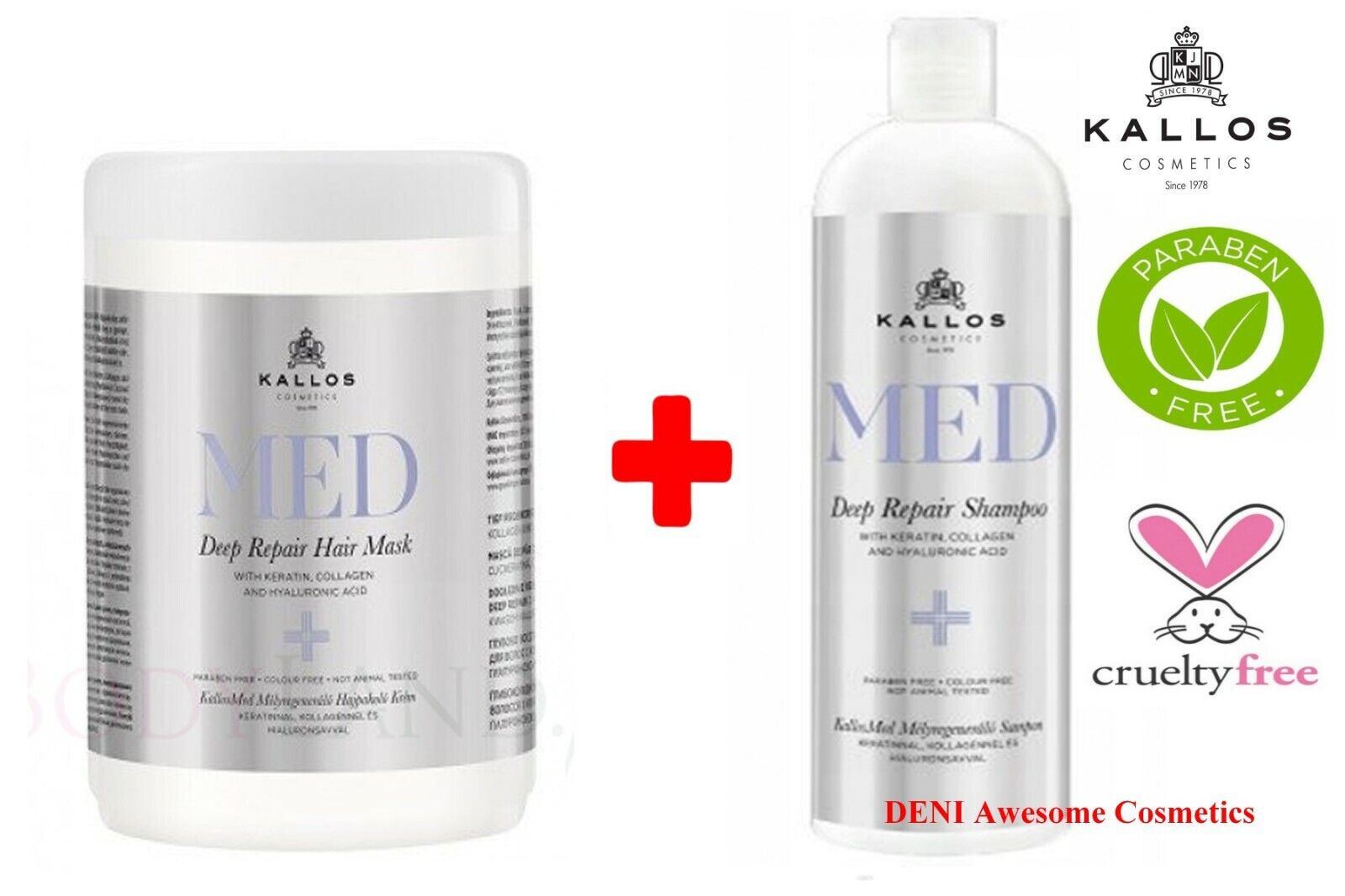 KALLOS MED -Deep Repair Hair Mask + Shampoo with Keratin,Collagen and Hyaluronic