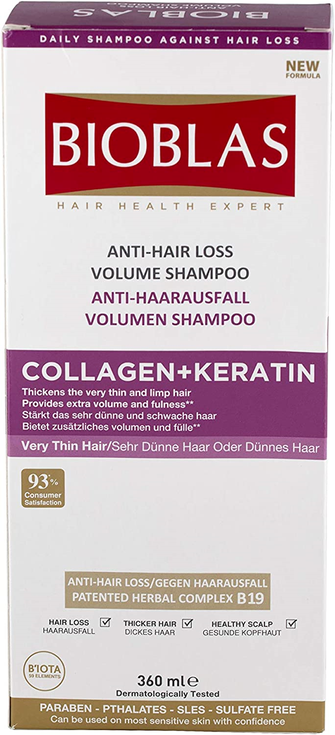 Bioblas Herbal Shampoo anti Hair Loss Collagen + Keratin 360ml volume +Hair grow