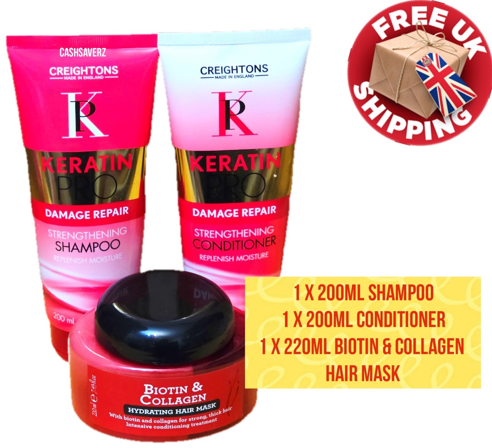 Keratin Pro Damage Repair Shampoo & Conditioner + Biotin Collagen Hair Mask