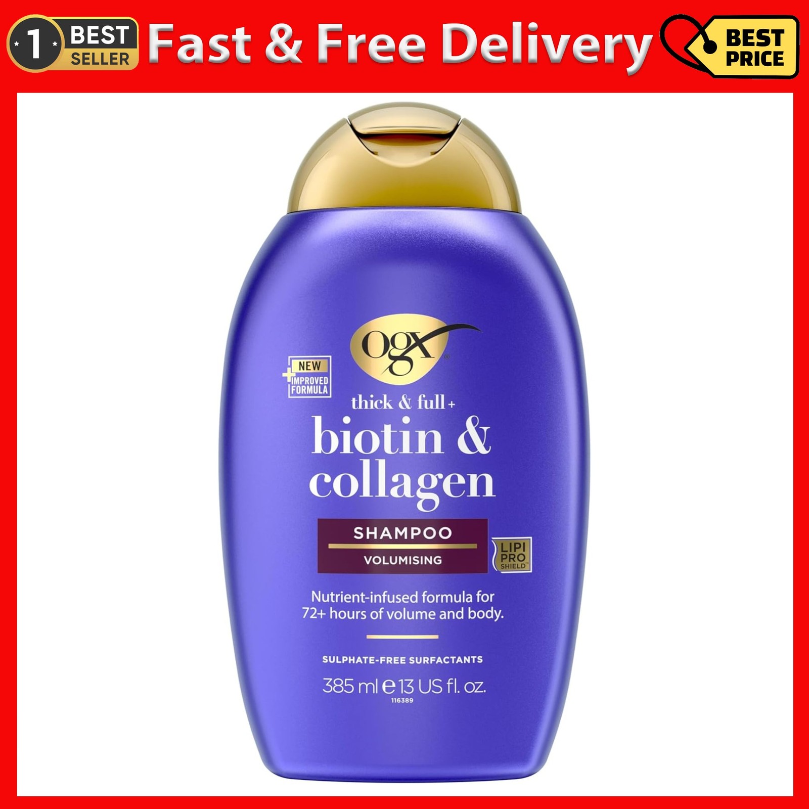 OGX Biotin Collagen Volumising Shampoo 385ml Fine Hair Sulfate Free Thick Full