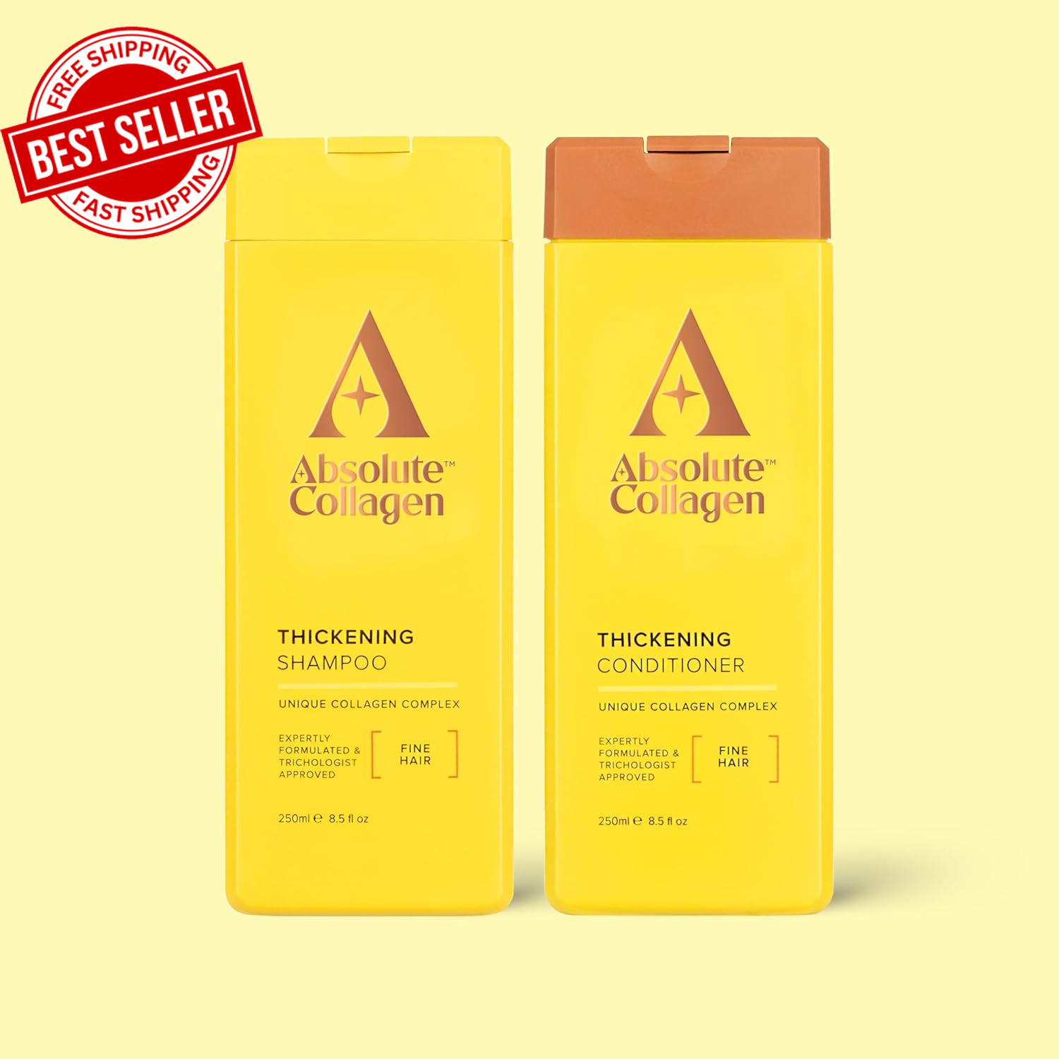 Absolute Collagen - Thickening Collagen Complex Shampoo and Conditioner Set 500ml - For Thin & Fine Hair - Strengthen, Nourish and Volumise - Boost Shine - Fight Signs of Hair Ageing - Paraben Free