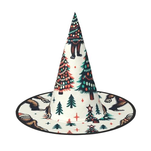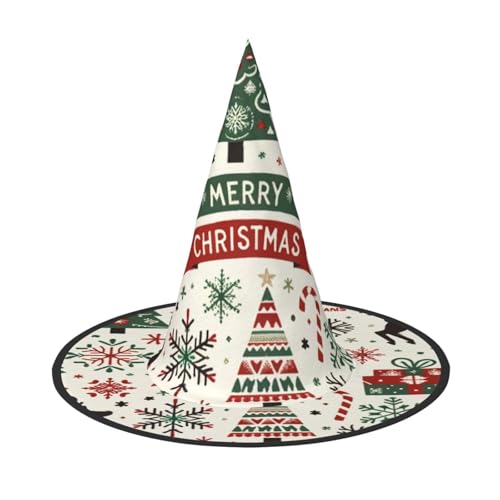 BBEXJIGY Christmas Tree and Snowman Print Oxford Cloth Halloween Witch Hat - Collapsible, for Halloween/Carnival/Role-Playing
