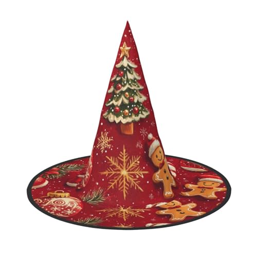 JIUFOTK Christmas-Tree-Ginger Halloween Witch Hat With Collapsible Top, Foldable Costume Hat For Party Cosplay