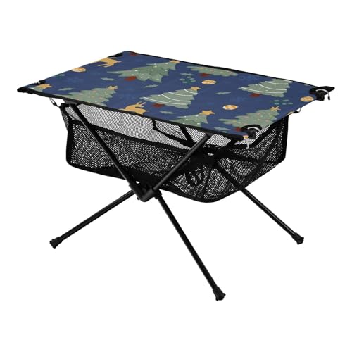 Camping Portable Table Blue Christmas Tree Snowflake Collapsible Camping Grilling Table with Carrying Bag for Dining Hiking Fishing