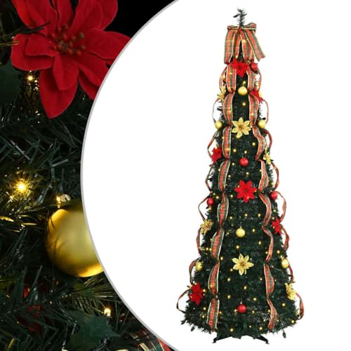 YBNKKUXKN Christmas Tree Christmas Tree with Lights & Balls, 5Ft Collapsible Tree Decorations, Artificial Pencil Trees Skinny Tree for Holiday Xmas Xmas Trees(1.8m)