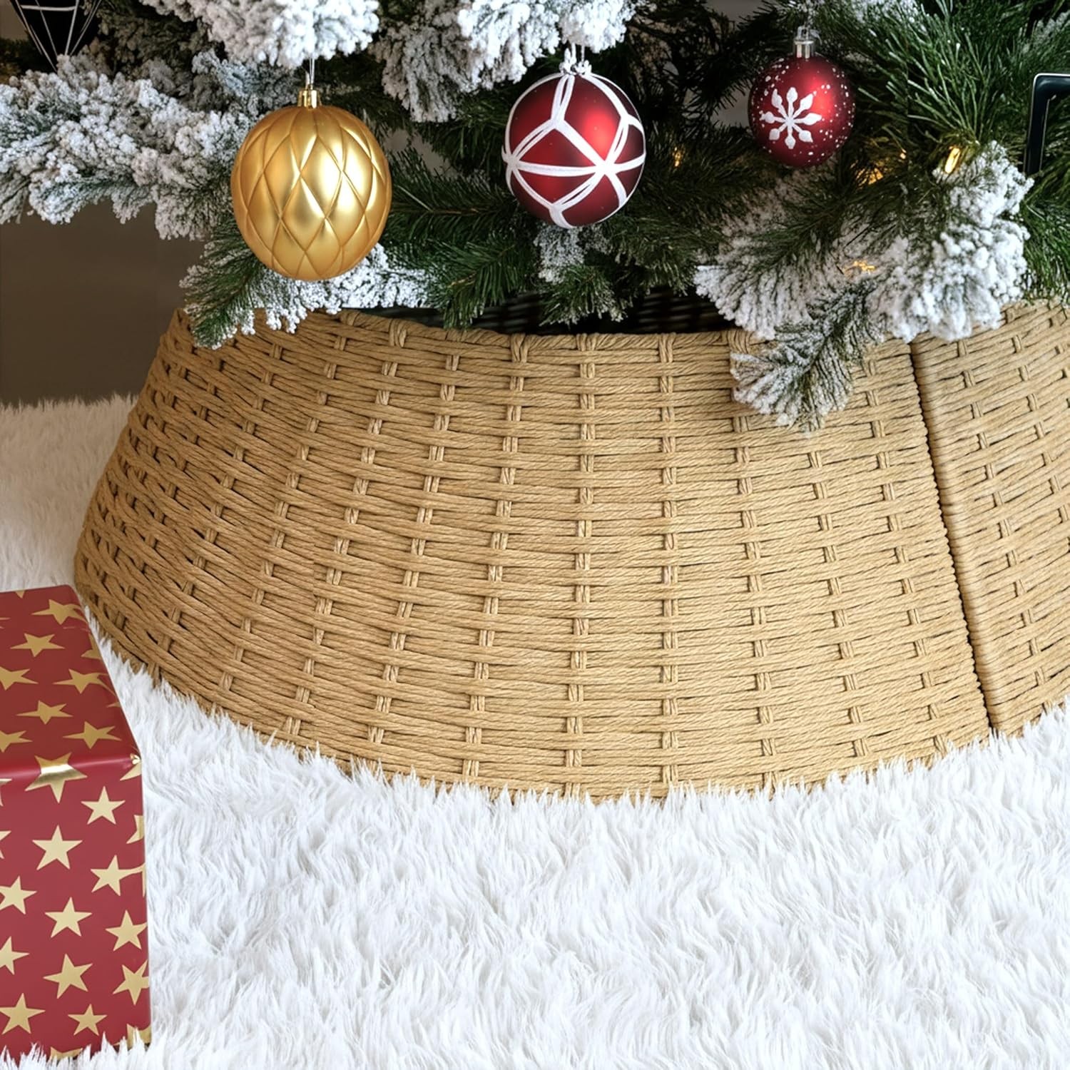 Christmas Tree Skirt - Wicker Style Collapsible Tree Stand Cover for Christmas