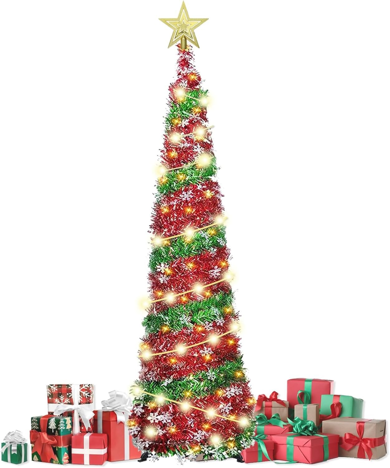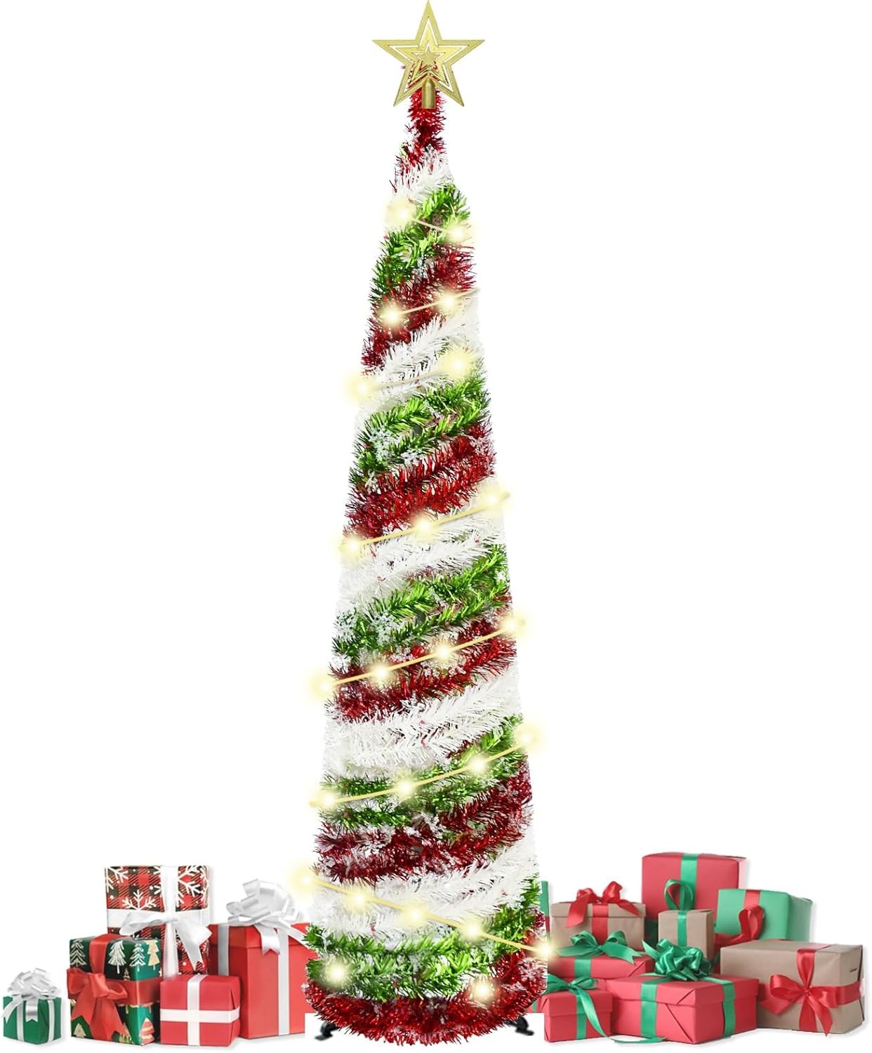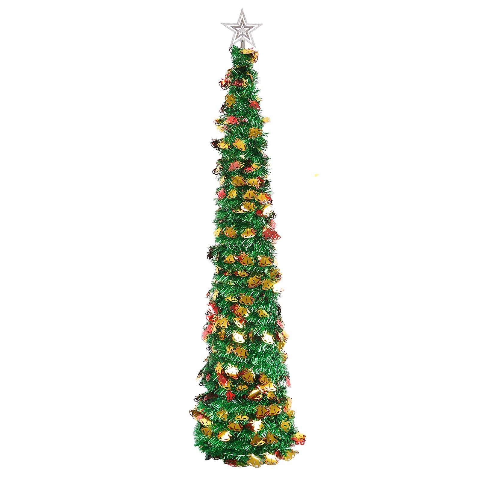 Collapsible Artificial Christmas Tree, 5ft/1.5m Xmas Tinsel Tree with Lights an