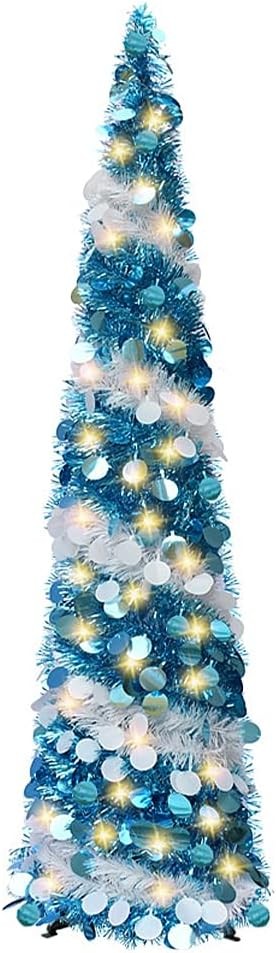 YBNKKUXKN Christmas Tree 5FT Christmas Tinsel Artificial Tree, Battery Powered Christmas Collapsible Colorful Sequin Trees Decorations for Home Party Indoor Xmas Trees(B)
