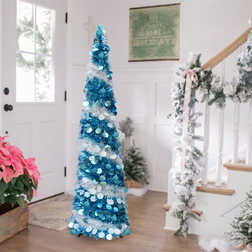 5ft Collapsible Artificial Christmas Tree,Pop Up Tinsel Coastal Christmas Tall Skinny Tree Sequin Pensil Tree for Apartment Home Store Holiday