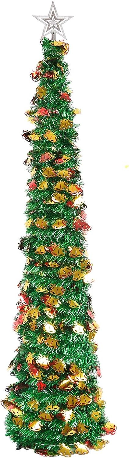5Ft/ 1.5m Pop Up Tinsel Christmas Tree, Collapsible Artificial Christmas Tree w