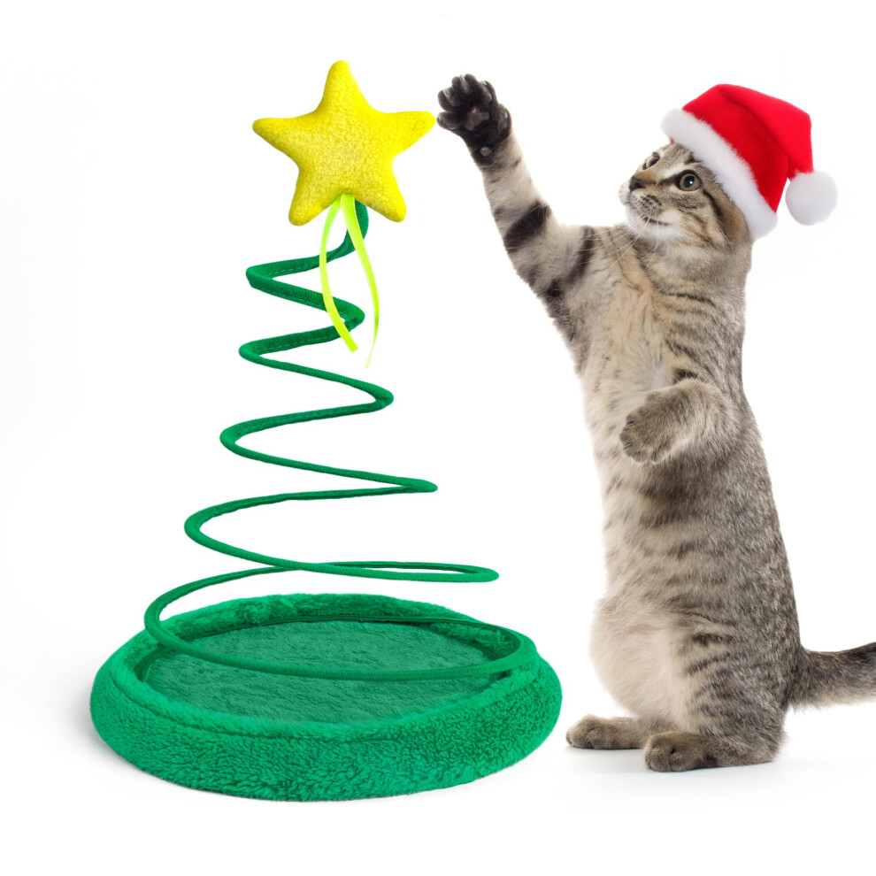 PAWISE Cat Toys for Indoor Cats, Christmas Interactive Kitten Toys, plush spring high resilience collapsible Christmas tree star style pet toys