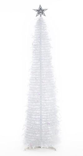 N&T NIETING Christmas Tree, 5ft Collapsible Pop Up White Tinsel Christmas Tree