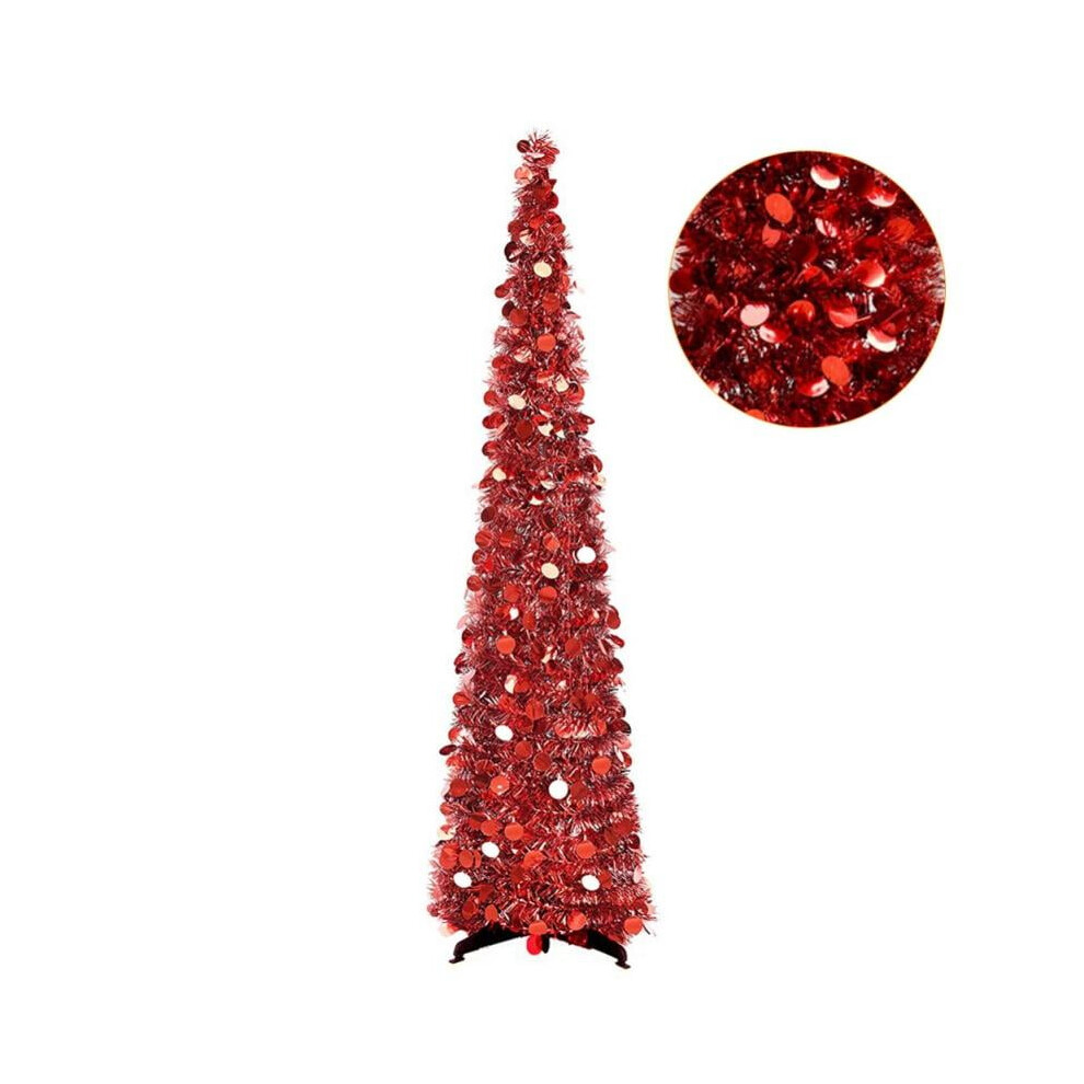 5FT Pop Up Collapsible Sequin Christmas Tree Tinsel Artificial Christmas Tree with Stand Luxury 1.5M Foldable Xmas Tree