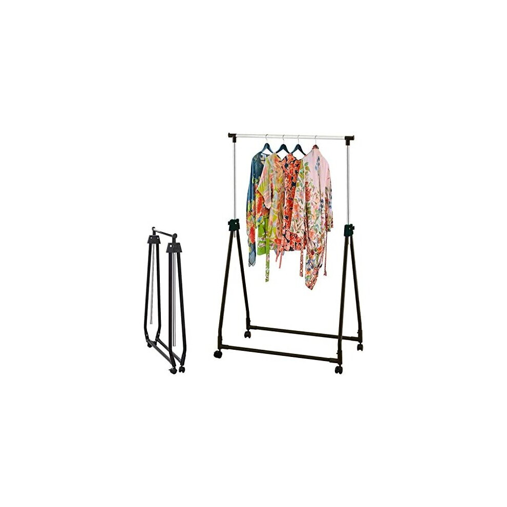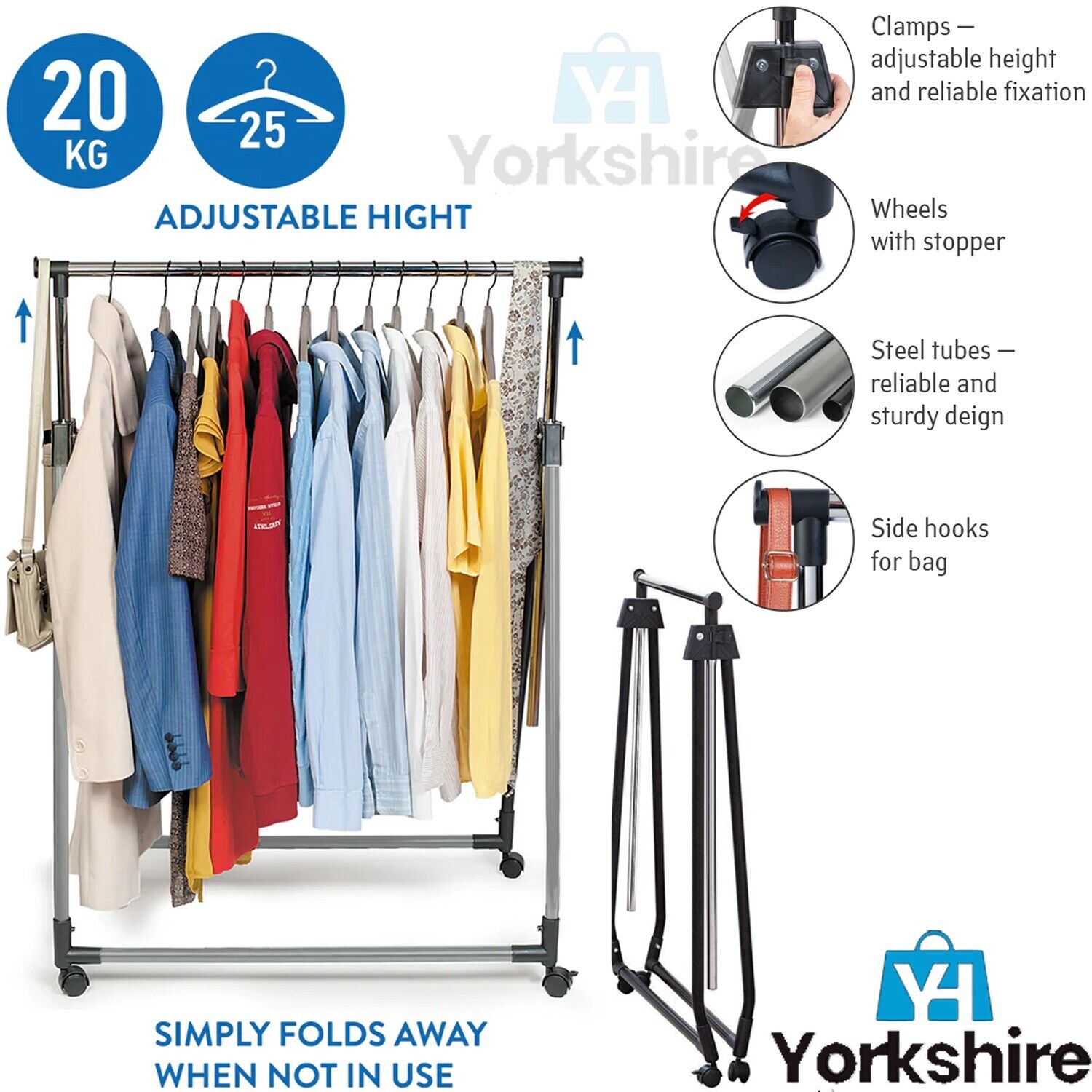 Foldable Collapsible Clothes Rail Rack Wheeled Compact Storage Adjustable Shelf
