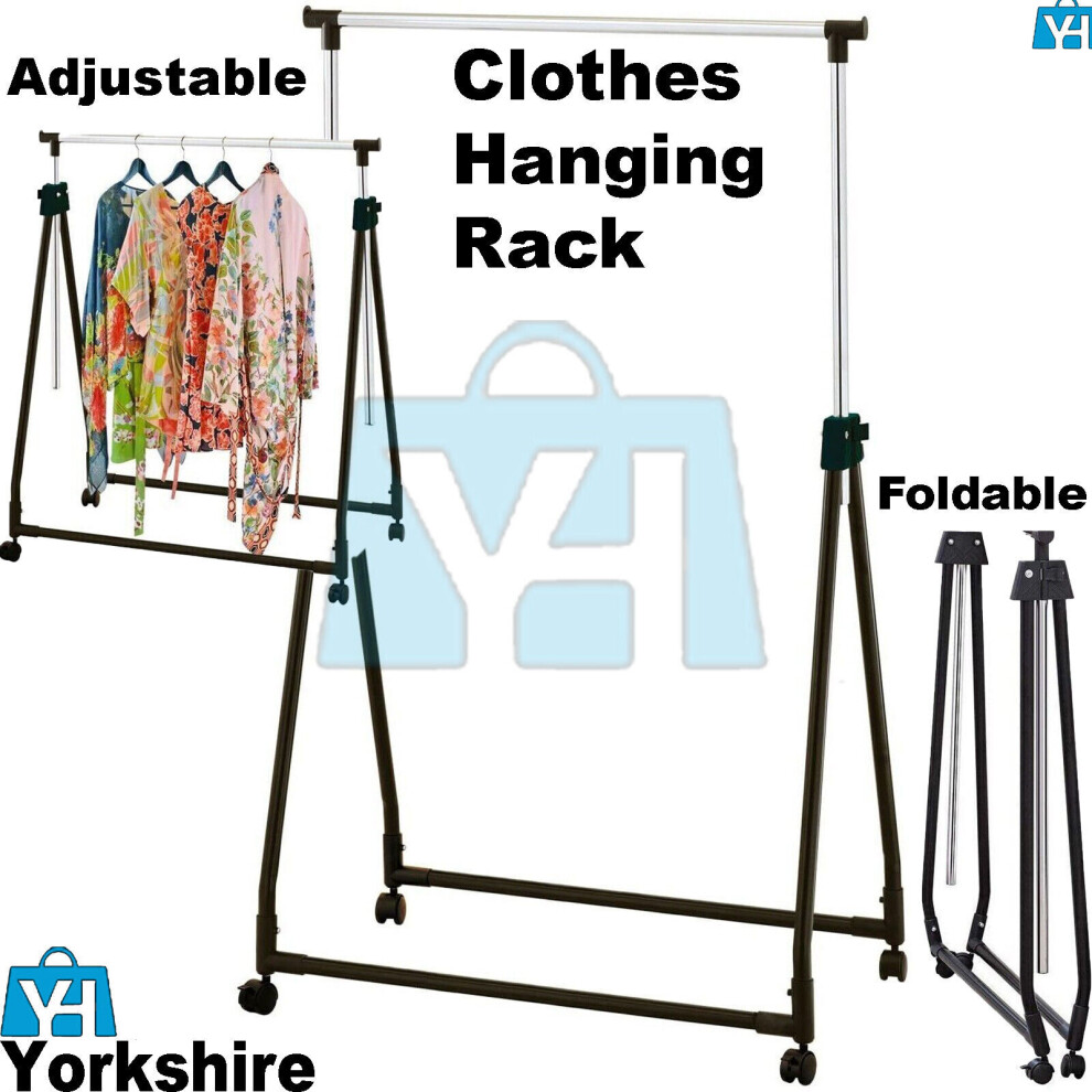 Heavy Duty Clothes Rail Rack Hanging Adjustable Foldable Collapsible Wheel Stand
