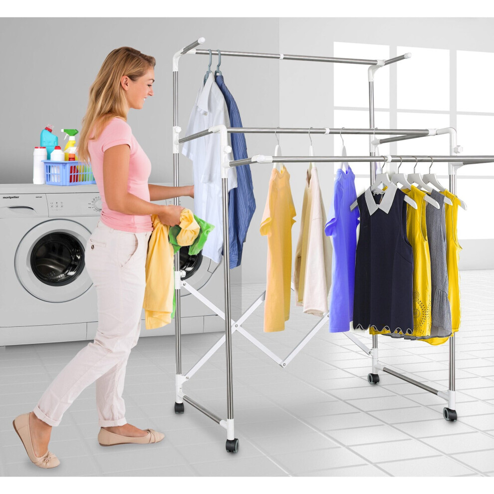 Hyfive Extendable Garment Rail Rack Collapsible Clothing Clothes Rail Dryer Double Rail - Folds for Easy Storage